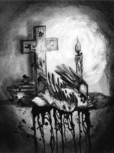 “We must now let the blood of the chicken drip onto the orisha stones. Now we must pour the animal’s blood around the vase.”